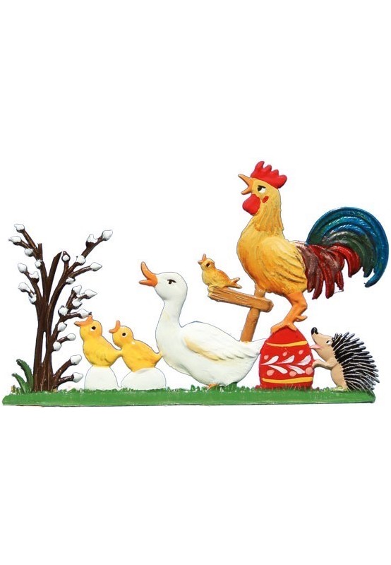 Pewter Duck, Rooster, Chick and Hedgehog standing